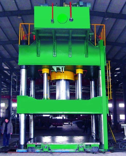 计算机优化结构设计,机身可采用框架式或四柱式结构。框架式拉杆预紧结构,精度高、附性好,四角八面导轨,导向精度高,抗偏载能力强;四柱式结构简单,经济,使用;进口材料油缸密封元件,可靠性高、使用寿命长;移动工作台,方便模具更换;拉深,压边滑块可通过定位销联为一体,实现单动工艺动作;机,电,液一体化安全装置,如油缸下腔支承回路,油缸上下腔互锁回路等安全优越了;进口PLC控制,工作灵敏可靠。